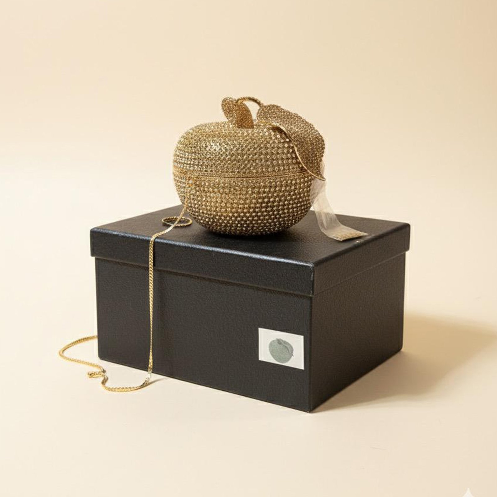 Turn heads wherever you go with this Luxury Apple Rhinestone Crystal Clutch, a perfect blend of elegance and creativity. Designed to sparkle at every angle, this statement piece is adorned with hundreds of shimmering rhinestones, crafted into an exquisite apple silhouette.
