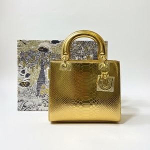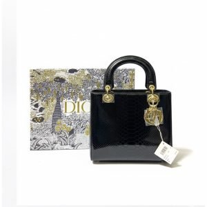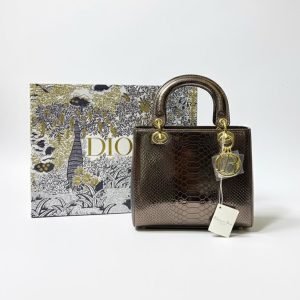 Be the first to review “Christian Dior Metallic Python Lady Dior-Embossed Handbag”