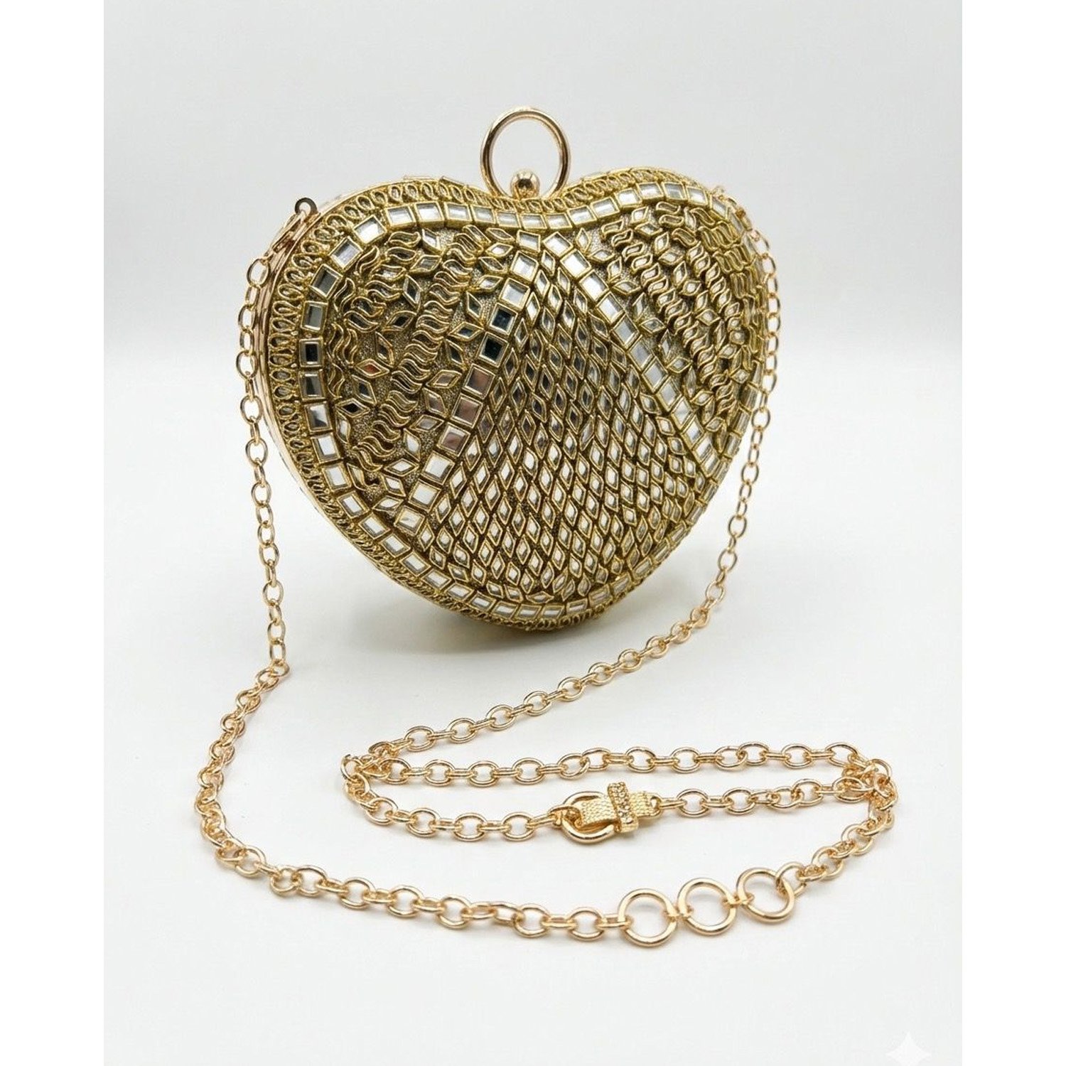 Kundan Heart-Shaped Metallic Clutch – Premium Party Wear
